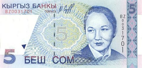 Киргизский сом. Купюра номиналом в 5 KGS, аверс.