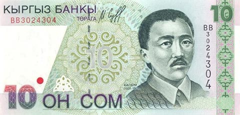 Киргизский сом. Купюра номиналом в 10 KGS, аверс.