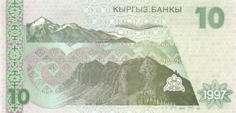 Киргизский сом. Купюра номиналом в 10 KGS, реверс.