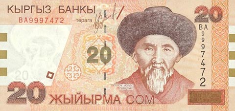 Киргизский сом. Купюра номиналом в 20 KGS, аверс.