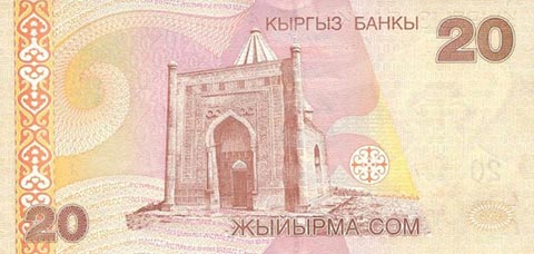 Киргизский сом. Купюра номиналом в 20 KGS, реверс.