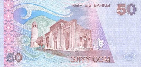 Киргизский сом. Купюра номиналом в 50 KGS, реверс.