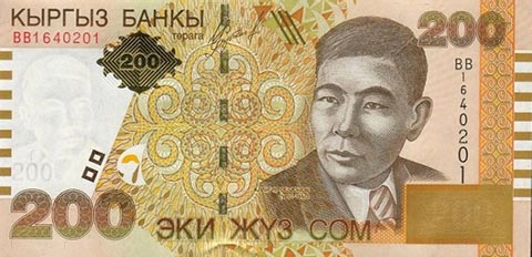 Киргизский сом. Купюра номиналом в 200 KGS, аверс.