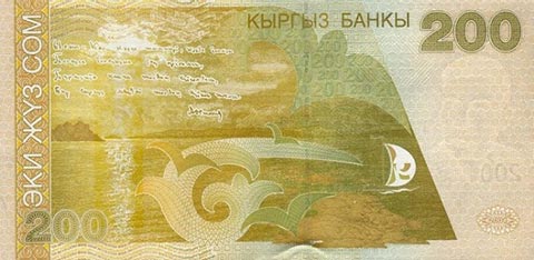 Киргизский сом. Купюра номиналом в 200 KGS, реверс.