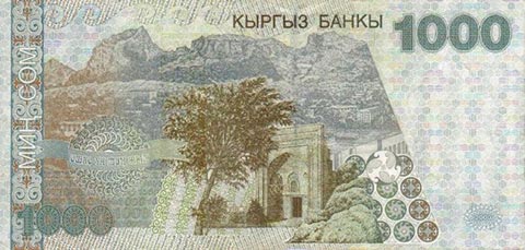 Киргизский сом. Купюра номиналом в 1000 KGS, реверс.