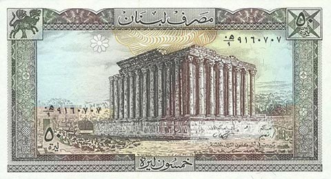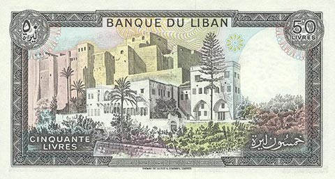 Ливанский фунт. Купюра номиналом в 50 LBP, реверс.