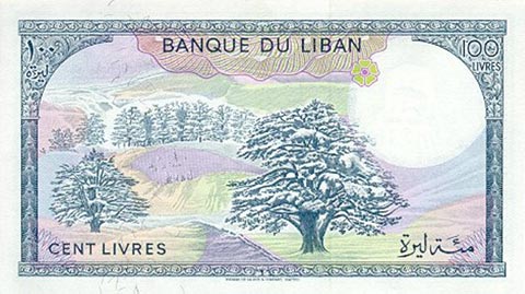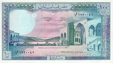 Ливанский фунт. Купюра номиналом в 100 LBP, реверс.