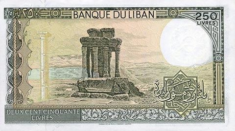 Ливанский фунт. Купюра номиналом в 250 LBP, реверс.