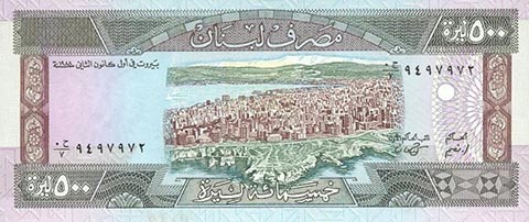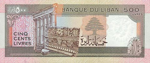 Ливанский фунт. Купюра номиналом в 500 LBP, реверс.