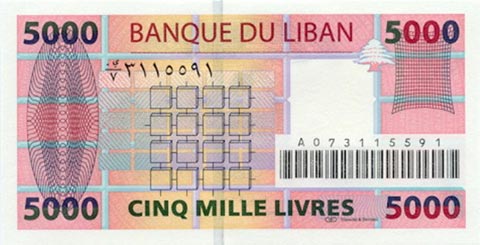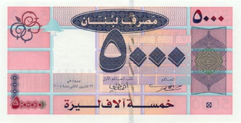 Ливанский фунт. Купюра номиналом в 5000 LBP, аверс.