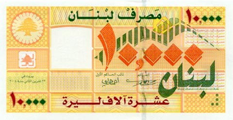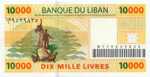 Ливанский фунт. Купюра номиналом в 10000 LBP, реверс.
