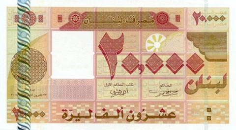 Ливанский фунт. Купюра номиналом в 20000 LBP, реверс.