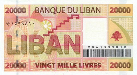 Ливанский фунт. Купюра номиналом в 20000 LBP, аверс.