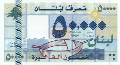 Ливанский фунт. Купюра номиналом в 50000 LBP, аверс.