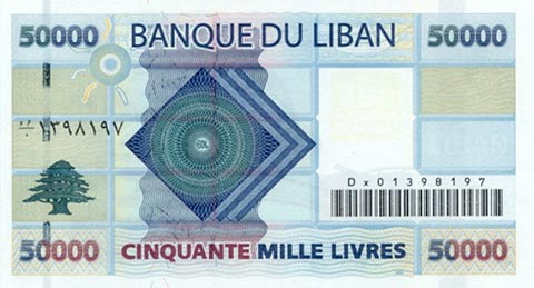Ливанский фунт. Купюра номиналом в 50000 LBP, реверс.