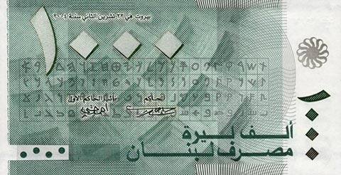 Ливанский фунт. Купюра номиналом в 1000 LBP, реверс.