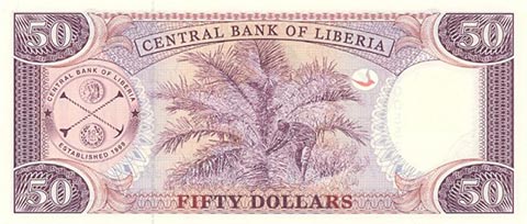 Либерийский доллар. Купюра номиналом в 50 LRD, реверс.