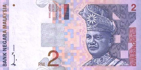 Малазийские ринггит. Купюра номиналом в 2 MYR, аверс.