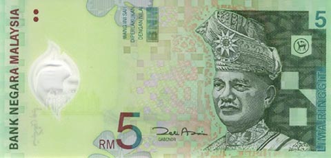 Малазийские ринггит. Купюра номиналом в 5 MYR, аверс.