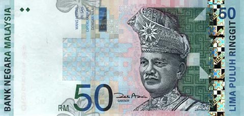 Малазийские ринггит. Купюра номиналом в 50 MYR, аверс.
