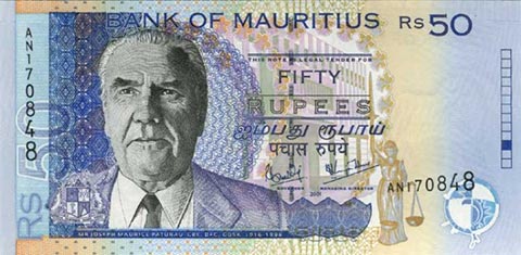 Маврикийская рупия. Купюра номиналом в 50 MUR, аверс.