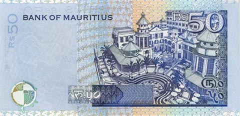 Маврикийская рупия. Купюра номиналом в 50 MUR, реверс.