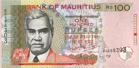 Маврикийская рупия. Купюра номиналом в 100 MUR, аверс.
