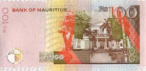 Маврикийская рупия. Купюра номиналом в 100 MUR, реверс.