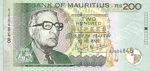 Маврикийская рупия. Купюра номиналом в 200 MUR, аверс.