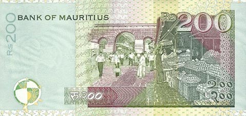 Маврикийская рупия. Купюра номиналом в 200 MUR, реверс.