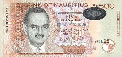 Маврикийская рупия. Купюра номиналом в 500 MUR, аверс.