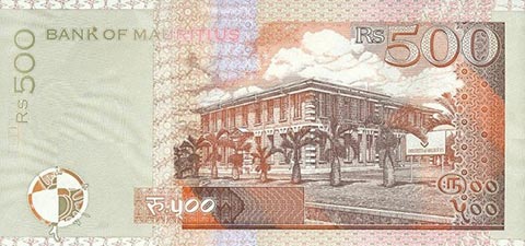 Маврикийская рупия. Купюра номиналом в 500 MUR, реверс.