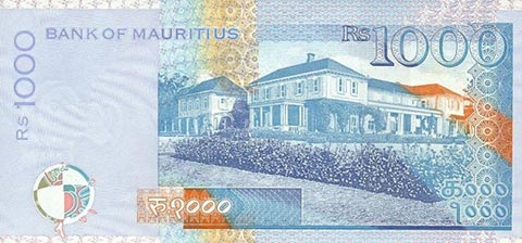 Маврикийская рупия. Купюра номиналом в 1000 MUR, реверс.