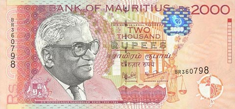 Маврикийская рупия. Купюра номиналом в 2000 MUR, аверс.