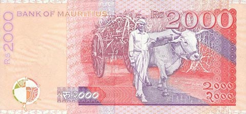 Маврикийская рупия. Купюра номиналом в 2000 MUR, реверс.