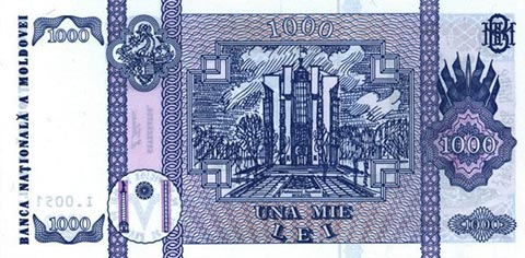 Молдавский лей. Купюра номиналом в 1000 MDL, реверс.