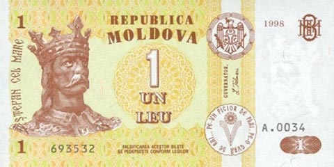 Молдавский лей. Купюра номиналом в 1 MDL, аверс.