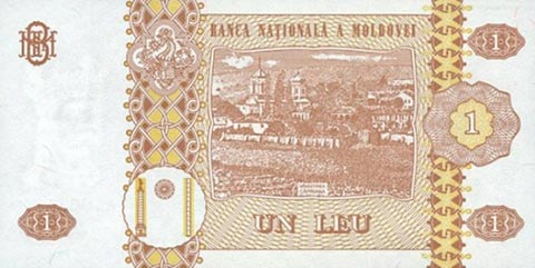 Молдавский лей. Купюра номиналом в 1 MDL, реверс.