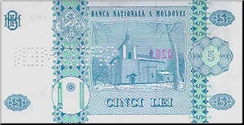 Молдавский лей. Купюра номиналом в 5 MDL, реверс.