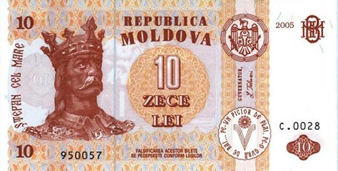 Молдавский лей. Купюра номиналом в 10 MDL, аверс.