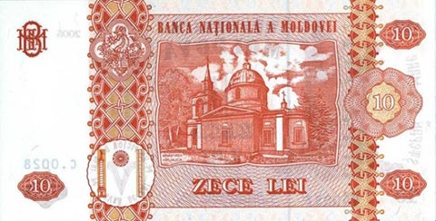 Молдавский лей. Купюра номиналом в 10 MDL, реверс.