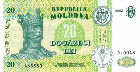 Молдавский лей. Купюра номиналом в 20 MDL, аверс.