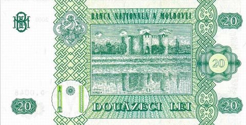 Молдавский лей. Купюра номиналом в 20 MDL, реверс.