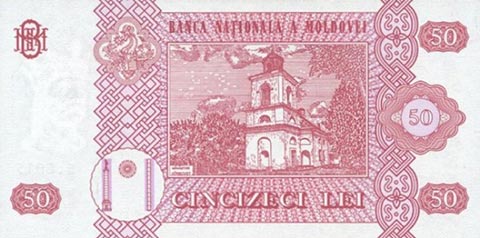 Молдавский лей. Купюра номиналом в 50 MDL, реверс.