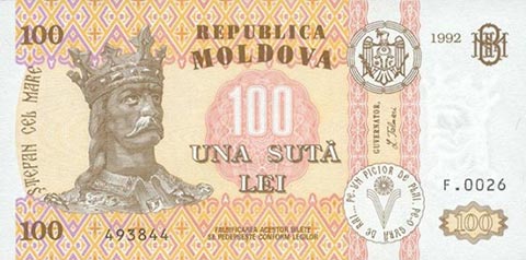 Молдавский лей. Купюра номиналом в 100 MDL, аверс.