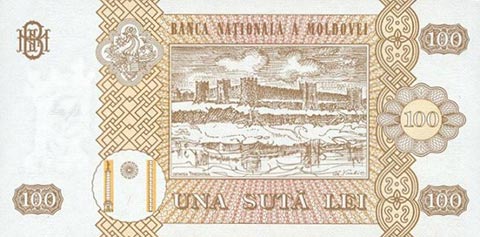Молдавский лей. Купюра номиналом в 100 MDL, реверс.
