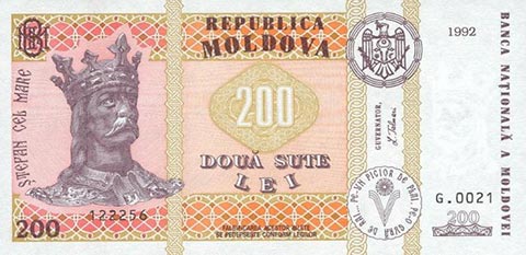 Молдавский лей. Купюра номиналом в 200 MDL, аверс.