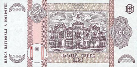 Молдавский лей. Купюра номиналом в 200 MDL, реверс.