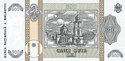Молдавский лей. Купюра номиналом в 500 MDL, реверс.
