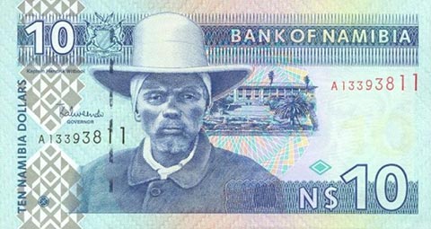 Доллар Намибии. Купюра номиналом в 10 NAD, аверс.